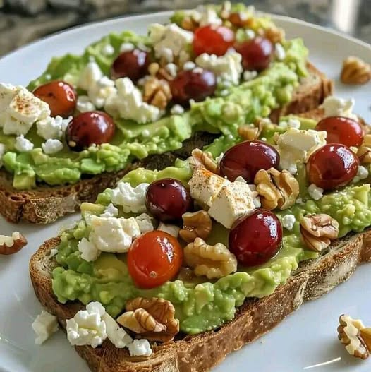 Avocado-Toast mit Feta, Kirschtomaten, Cranberries und Walnüssen: Ein gesunder Genuss